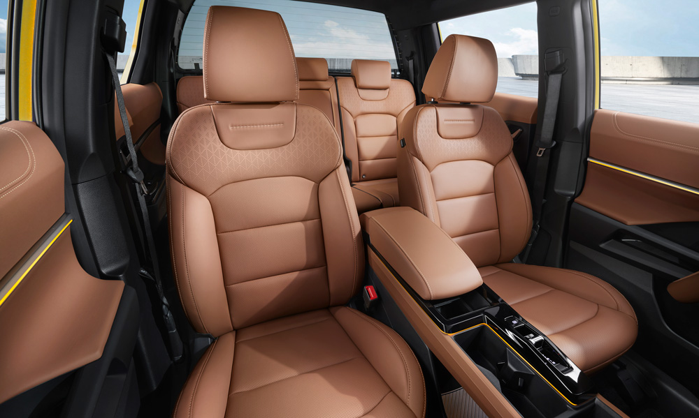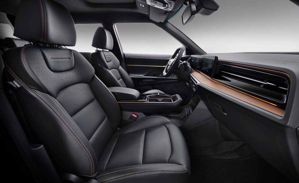 Musso EV доступен только с салоном черного цвета. Фото салона коричневого цвета приведены только для примера.