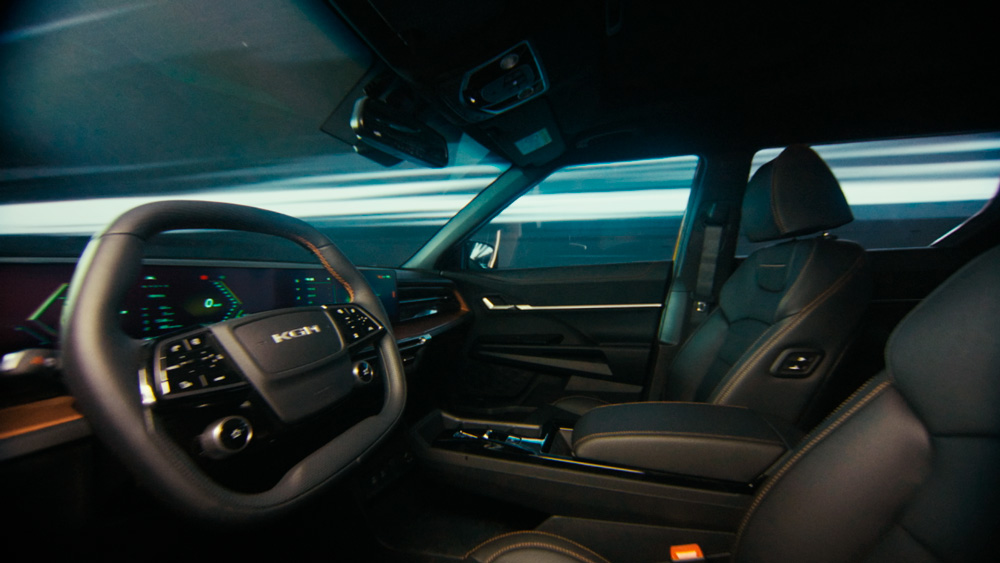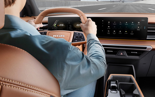 Интерьер Musso EV отличается изысканнным дизайном и выполнен из высококачественных материалов. Большой панорамный дисплей обеспечивает превосходный обзор и прост в использовании.